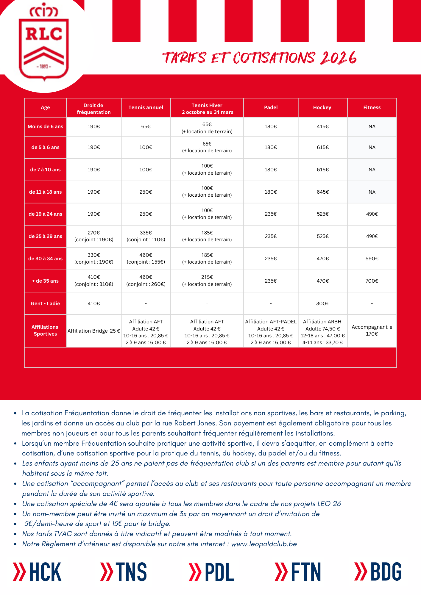- Tous les membres du Royal Léopold Club doivent se soumettre au Règlement d'ordre intérieur : consulter ici.